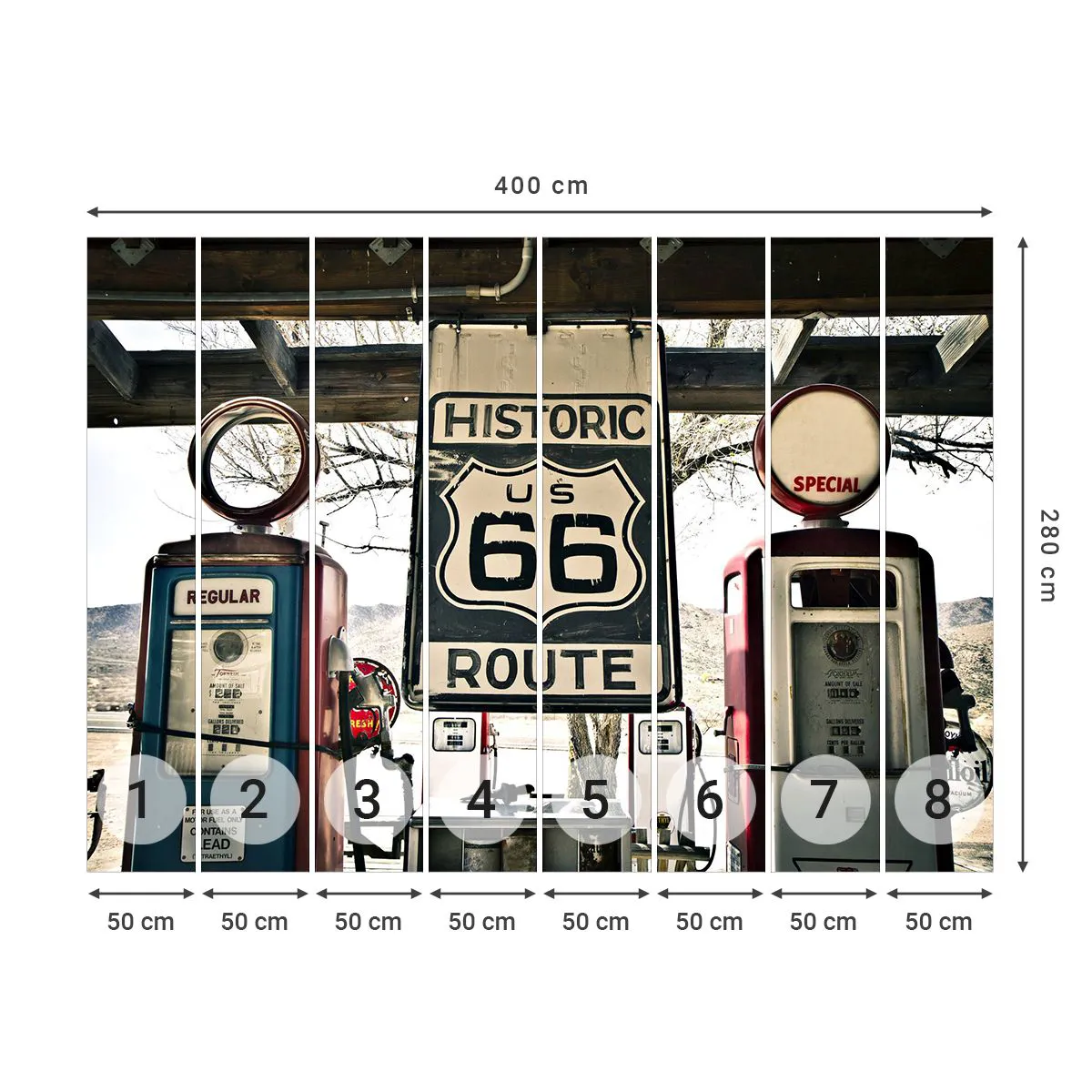 Tapet Premium Canvas - O călătorie americană retro - Epocă, Ruta 66, Ruta 66 - 400x280 cm
