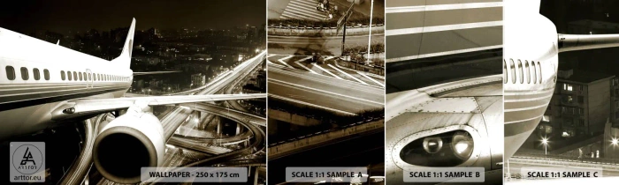 Mostră de Tapet Standard Eco - Zbor în noapte - Avion, Oraș, Automobile - 100x30 cm