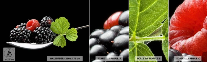 Mostră de Tapet Standard Eco - Gustul prospețimii - Fructe, mure, Zmeură - 100x30 cm