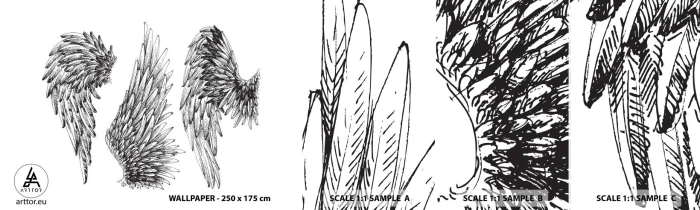 Mostră de Tapet Standard Eco - Și tu poți fi un înger - Pene de pasăre, Aripi, Grafică - 100x30 cm