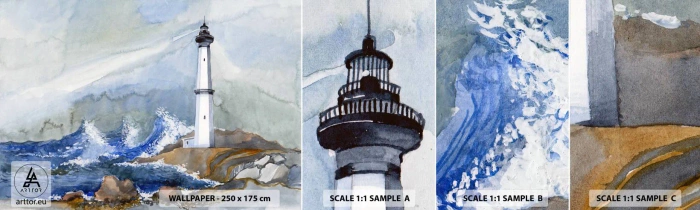 Mostră de Tapet Standard Eco - Împotriva întunericului și a furtunii - Far, Peisaj, Ocean - 100x30 cm