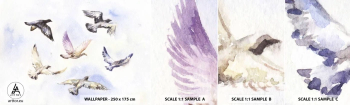 Mostră de Tapet Standard Eco - Libertatea în gri și albastru - Păsări, Grafică, Bucată - 100x30 cm