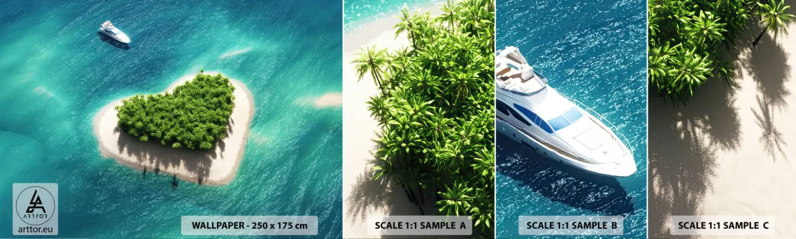 Mostră de Tapet Standard Eco - Iubesc vara - Peisaj, Insula În Ocean, Iaht - 100x30 cm