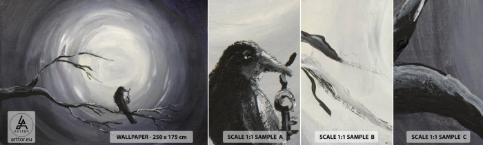 Mostră de Tapet Standard Eco - Cheia pentru misterul nopții - Abstracția, Cioară, Pasăre - 100x30 cm