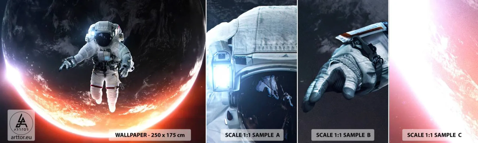 Mostră de Tapet Standard Eco - Pot să mai stau un pic? - Astronaut, Cosmos, Cosmonaut - 100x30 cm