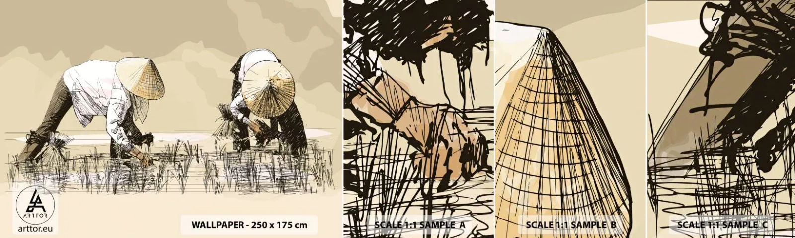Mostră de Tapet Standard Eco - O recoltă reușită - Asia, Plantația de orez, Câmp de orez - 100x30 cm