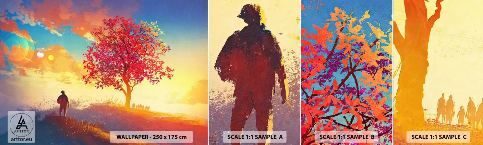 Mostră de Tapet Standard Eco - Pelerin la destinație - Peisaj, Copac, Rătăcitor - 100x30 cm