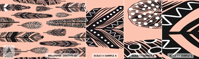 Mostră de Tapet Standard Eco - Colecție indiană - Abstracția, pene, Boho - 100x30 cm