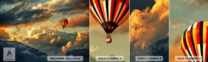 Mostră de Tapet Standard Eco - Zbor pentru că vreau - Abstracția, Zborul cu balonul, Munţi - 100x30 cm