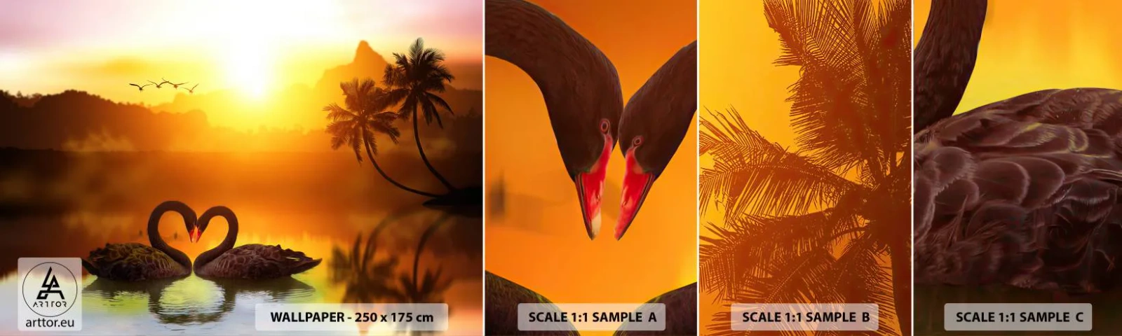 Mostră de Tapet Standard Eco - Fiecare cu pereche - inima, Lebedele, Palmier de nuca de cocos - 100x30 cm