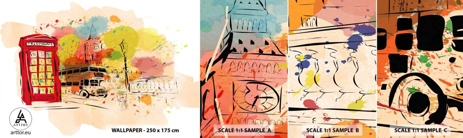 Mostră de Tapet Standard Eco - Orașul varietăților - Oraș, Londra, Abstracția - 100x30 cm