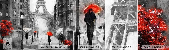 Mostră de Tapet Standard Eco - Toate drumurile duc la el - Oraș, Paris, turnul Eiffel - 100x30 cm