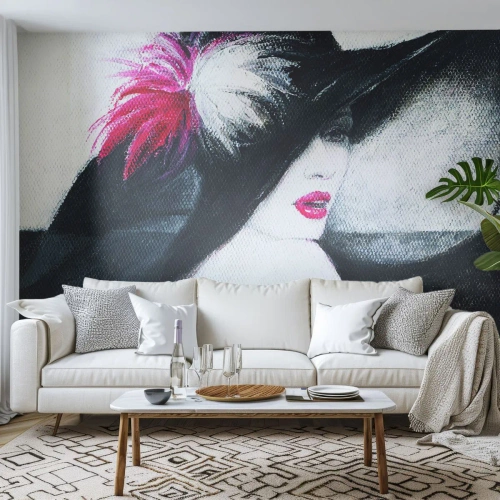 Tapet Premium Canvas - Întotdeauna un mister - Femeie În pălărie, Chipul de femeie, buze rosii - 100x70 cm