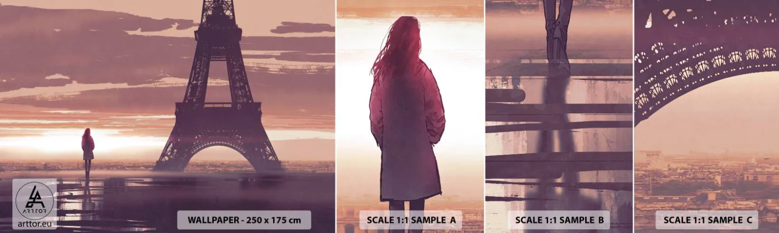 Mostră de Tapet Standard Eco - Doar ele două - Oraș, turnul Eiffel, Paris - 100x30 cm