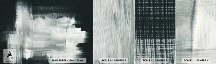 Mostră de Tapet Standard Eco - Țesut vertical și orizontal - Abstracția, Bucată, alb-negru - 100x30 cm
