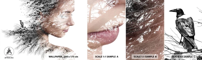 Mostră de Tapet Standard Eco - Spiritul pădurii - Abstracția, Chipul de femeie, Copac - 100x30 cm