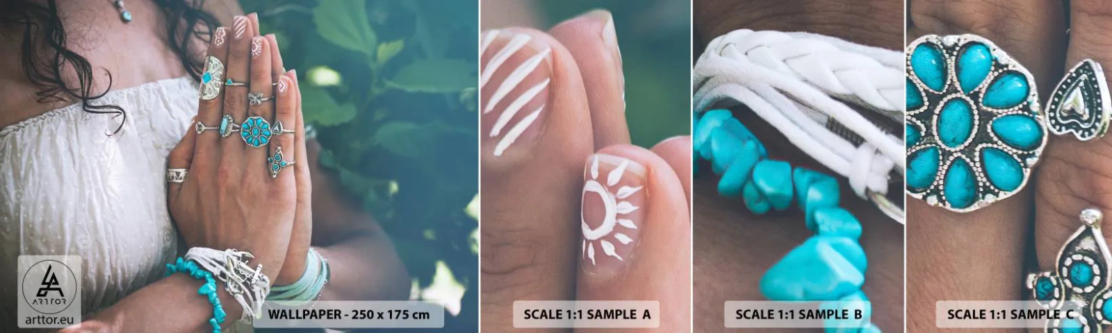 Mostră de Tapet Standard Eco - Bine ați venit în centrul ființei - Femeie, Bijuterii, Boho - 100x30 cm