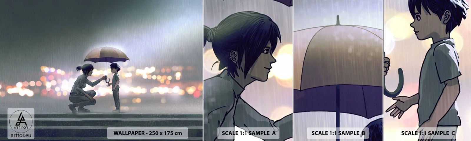 Mostră de Tapet Standard Eco - Și totul este bine acum - Pentru copii, Familie, Umbrelă - 100x30 cm