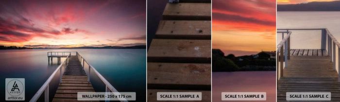 Mostră de Tapet Standard Eco - Flacăra blândă a serii - Peisaj, Apus de soare, Pier din lemn - 100x30 cm