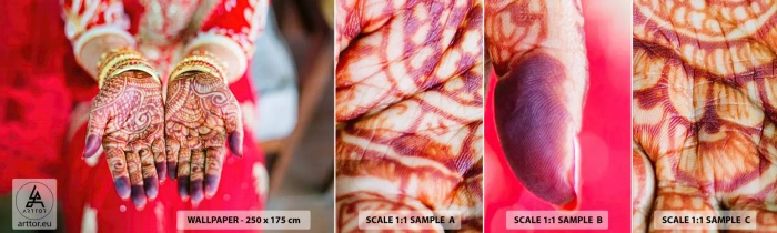 Mostră de Tapet Standard Eco - Gata să prindă fericirea - Mâinile femeilor, Modele orientale, India - 100x30 cm