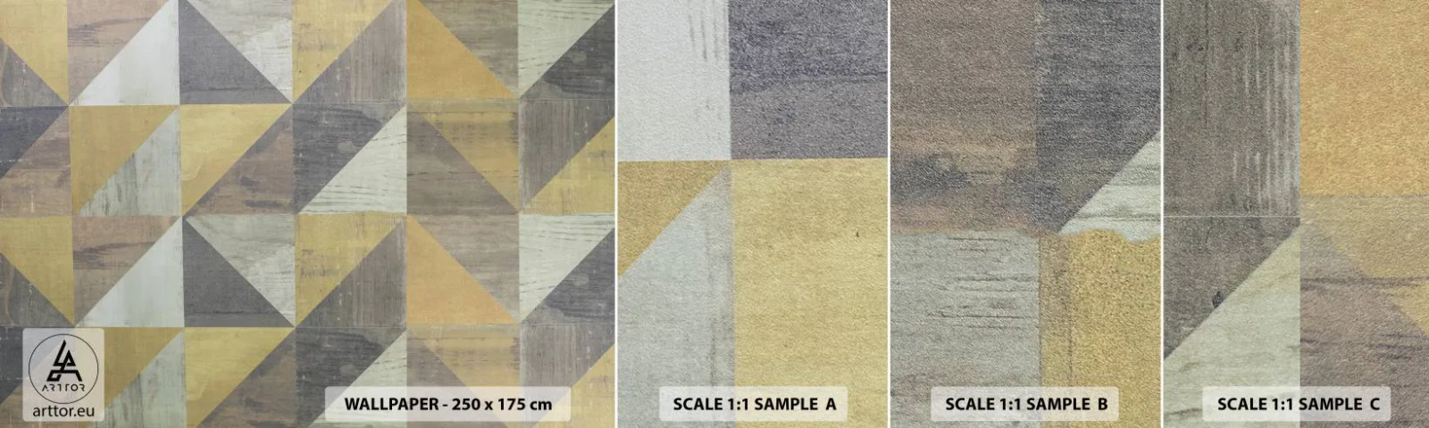 Mostră de Tapet Standard Eco - La unghiul triunghiului - Abstracția, Bucată, Triunghiuri - 100x30 cm