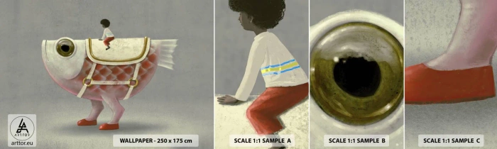 Mostră de Tapet Standard Eco - Călărețul Pescărel - Abstracția, Peşte, Pentru copii - 100x30 cm