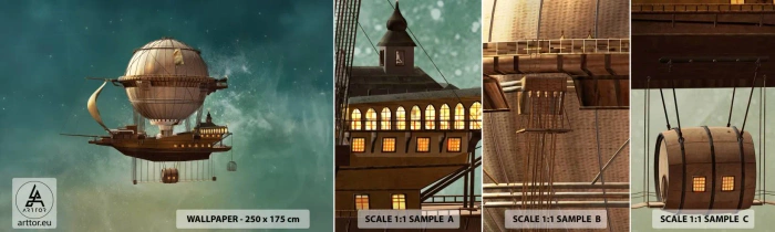 Mostră de Tapet Standard Eco - Jules Verne vă transmite salutări - Retro, excursie, Balon - 100x30 cm