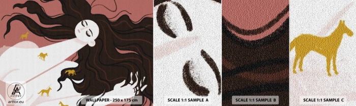 Mostră de Tapet Standard Eco - Visul despre calul de aur - Femeie, Portret, Minimalism - 100x30 cm