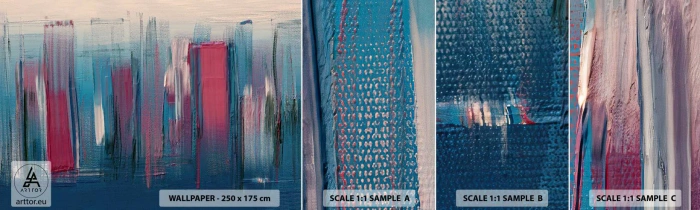Mostră de Tapet Standard Eco - Compoziție verticală în albastru și roșu - Bucată, Abstracția, A picta - 100x30 cm