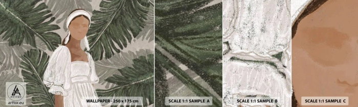 Mostră de Tapet Standard Eco - Portret exotic - Boho, Femeie, Frunze - 100x30 cm