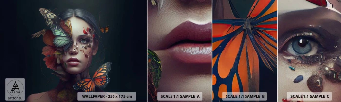 Mostră de Tapet Standard Eco - Transformare minunată - Fluturi, Față, Femeie - 100x30 cm