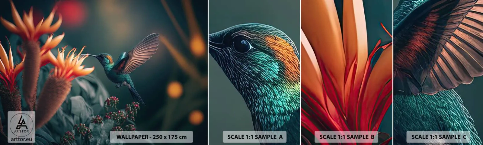 Mostră de Tapet Standard Eco - Viață cu adevărat colorată - Pasăre, Exotic, Floare - 100x30 cm