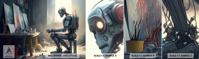 Mostră de Tapet Standard Eco - Actul de creație - Bucată, Pictura, Robot - 100x30 cm