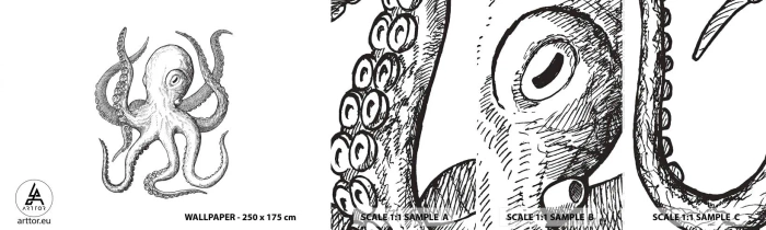Mostră de Tapet Standard Eco - Dansând cu valurile - Caracatiță, Desen, Litoral - 100x30 cm