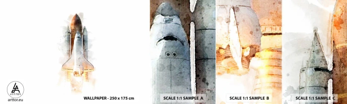 Mostră de Tapet Standard Eco - Exploratorii la start - O rachetă spațială, Cosmos, Minimalism - 100x30 cm