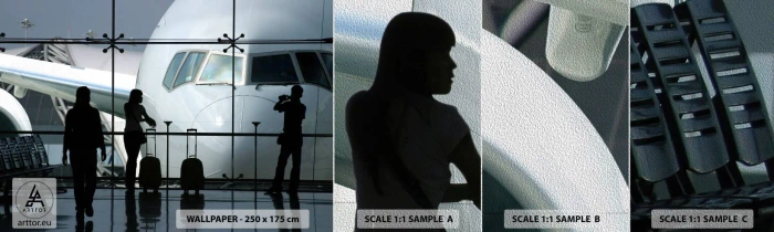 Mostră tapet Premium Sand - Vis a vis la aeroport - Avion, Aeroport, Călătorii - 100x30 cm