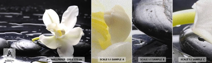 Mostră tapet Premium Sand - Studiu în alb și negru - Flori, Pietre, Orhidee - 100x30 cm