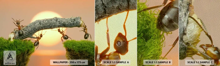 Mostră tapet Premium Sand - Cooperare veselă - Natură, Furnicile, Apus de soare - 100x30 cm