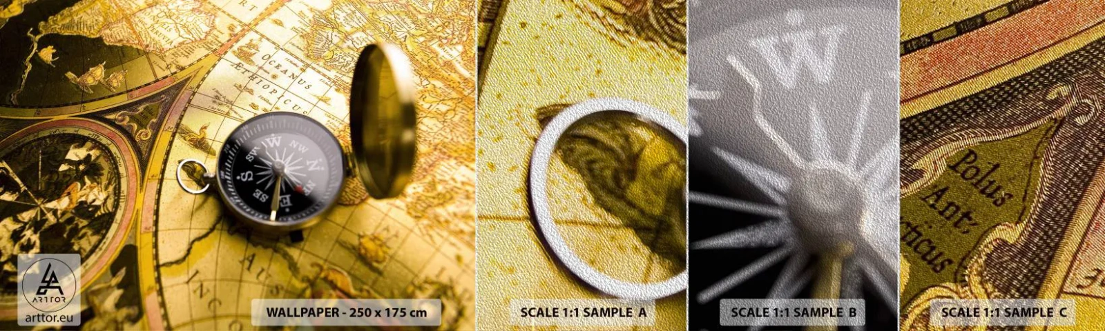 Mostră tapet Premium Sand - Sau poate până la capătul lumii? - Călătorii, Hărțile lumii, Busolă - 100x30 cm