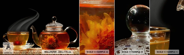 Mostră tapet Premium Sand - Magia și arta preparării ceaiului - Ceai, Ceainic, Ceaşcă de ceai - 100x30 cm