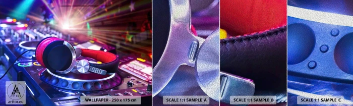 Mostră tapet Premium Sand - Imediat începe distracția - Muzică, Studio de muzică, Căști - 100x30 cm