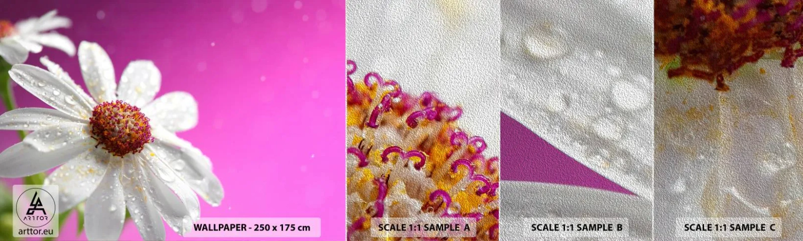 Comandați un tapet foto ARTTOR personalizat și bucurați-vă de o potrivire perfectă pentru peretele dvs. Cu aceasta optiune vei economisi bani neplatind excesul de material, iar modelul se va integra perfect in spatiul pe care vrei sa il decorezi. Personalizează tapetul foto și creează un decor unic!