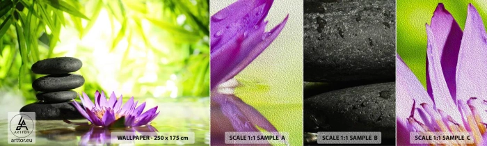 Mostră tapet Premium Sand - Într-o colibă de bambus - Floare, floare de lotus, Bambus - 100x30 cm