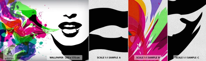 Mostră tapet Premium Sand - O poveste în culorile curcubeului - Abstracția, Gură, Grafică colorată - 100x30 cm
