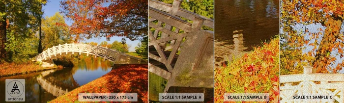 Mostră tapet Premium Sand - Pe podul alb al suspinelor - Peisaj, Parc, Pod de lemn - 100x30 cm