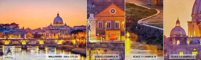 Mostră tapet Premium Sand - Amurg deasupra Orașului Etern - Oraș, Roma, Arhitectură - 100x30 cm