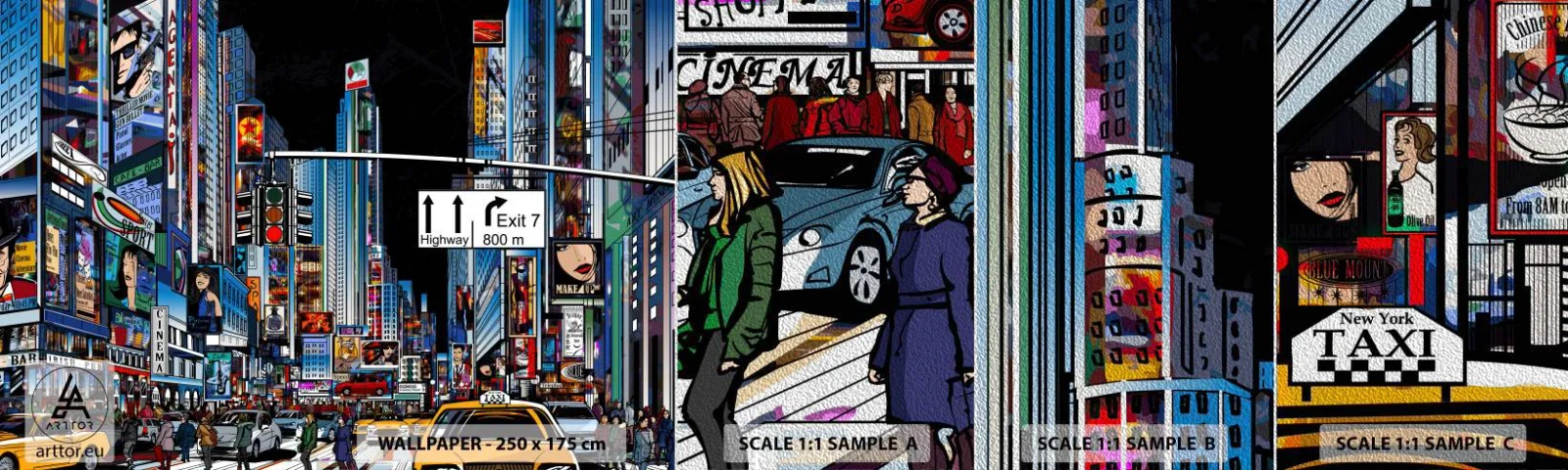 Mostră tapet Premium Sand - O noapte mare și comică - Oraș, Arhitectură, New York - 100x30 cm