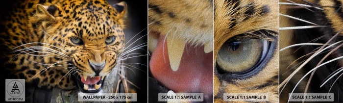Mostră tapet Premium Sand - Nu te apropia, te avertizez! - Animale, leopard, Pisica sălbatică - 100x30 cm