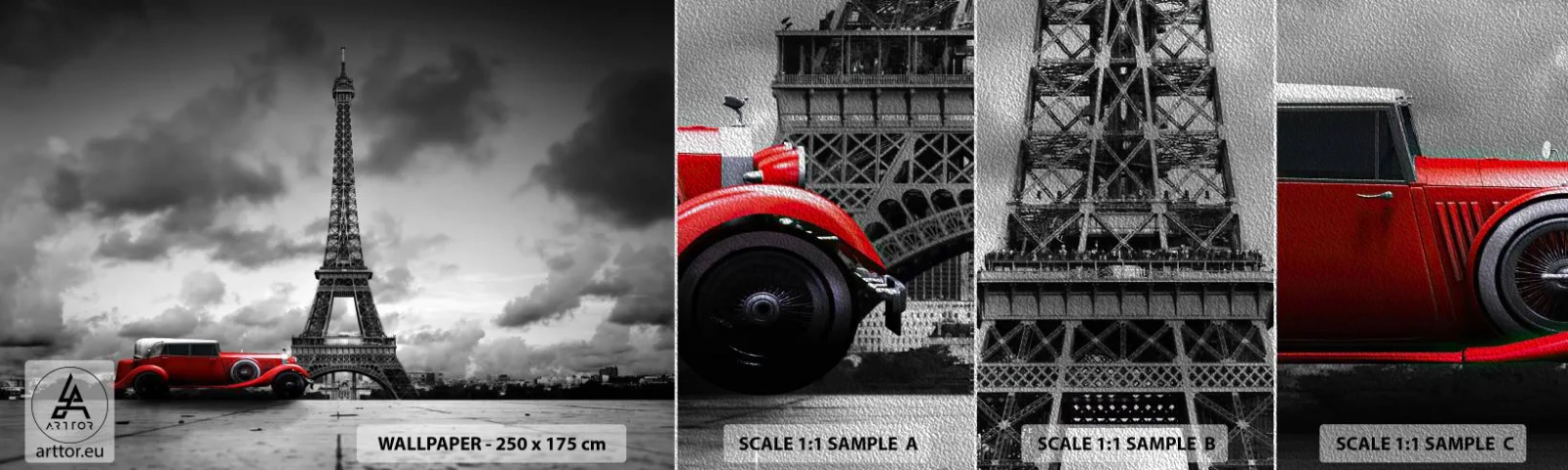 Mostră tapet Premium Sand - Nu cu mult timp în urmă, la Paris - Automobile, turnul Eiffel, Paris - 100x30 cm