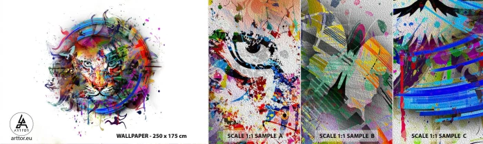 Mostră tapet Premium Sand - Ascunzându-se în spatele voalului curcubeu - Abstracția, Tigru, Grafică - 100x30 cm